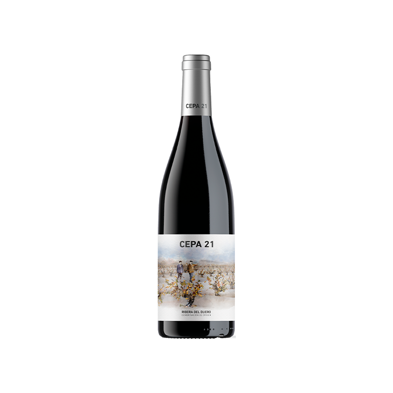 Este vino Cepa 21 en su fase visual se presenta con un color rojo cereza picota con ribetes granates. En nariz es un vino lleno de matices, con un equilibrio entre frescura y madurez. Su conjunto aromático está enriquecido por las notas propias de un paso por barrica que aporta sutiles toques de especias y balsámicos. En la fase gustativa es un vino estructurado y potente, de acidez equilibrada propia de la gran altitud de los viñedos de los que procede.